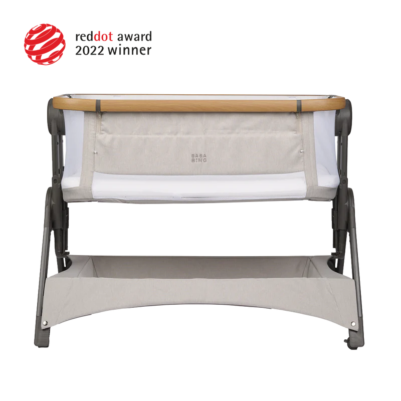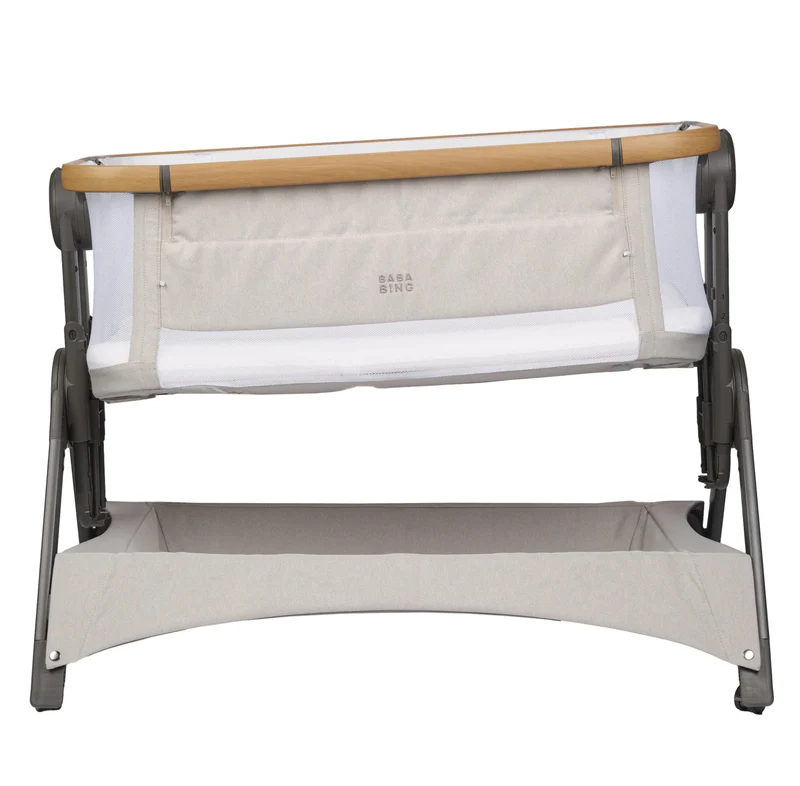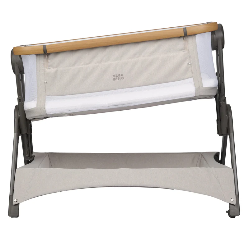 Introducing the Bababing Bedside and travel crib, your little one’s new cozy haven for peaceful nights. This lightweight crib is a breeze to move around your home and perfect for travel, thanks to its convenient one-collapse fold. With the Kose Cool lining, your baby stays comfy and cool, ensuring they can sleep soundly. The adjustable legs allow the crib to fit snugly next to almost any bed, making late-night cuddles and feedings effortless. Plus, its Scandinavian-inspired design, featuring a warm wood finish and a soft neutral palette, adds a stylish touch to your home.