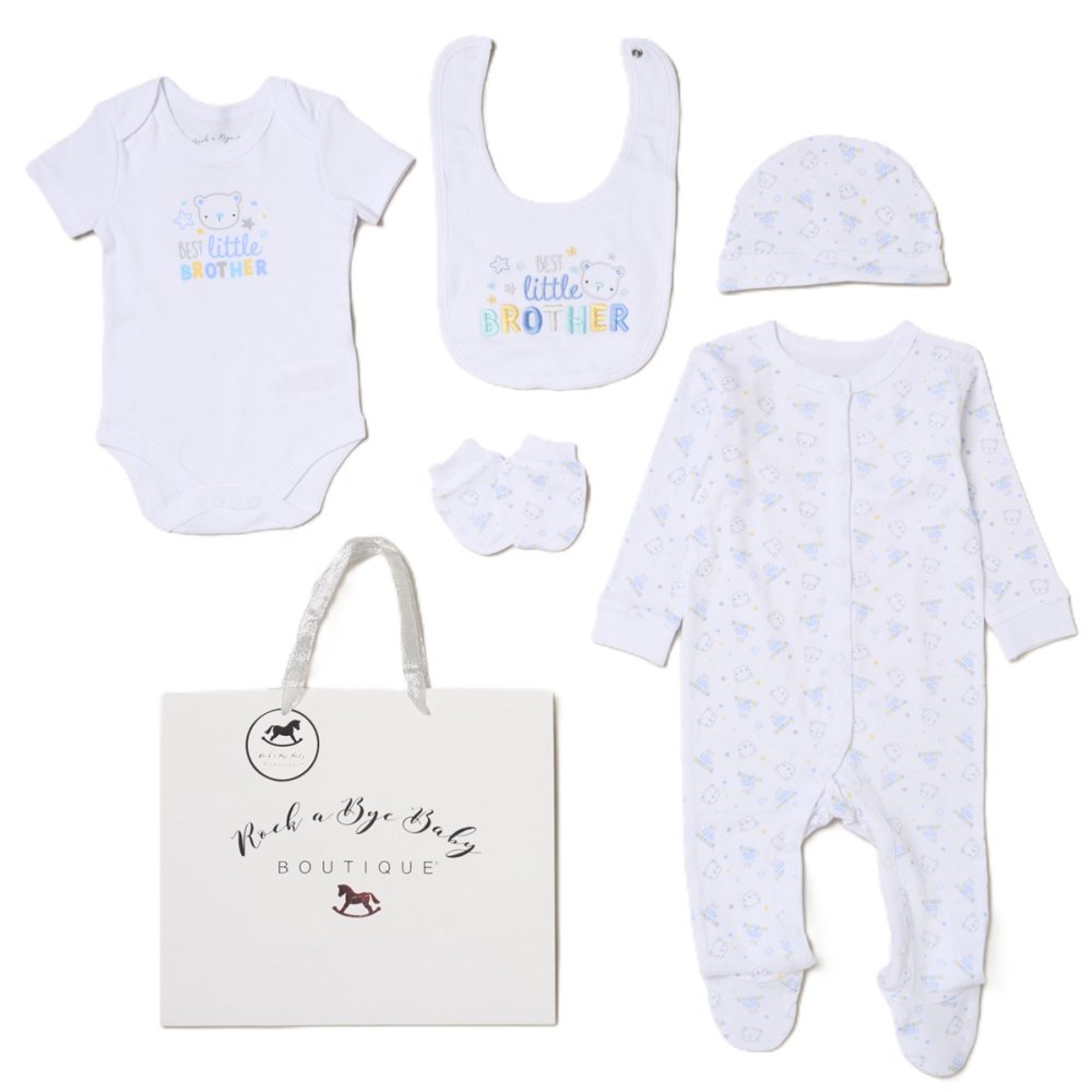 Baby Boys 6 Piece Mesh Bag Gift Set- Best Little Brother