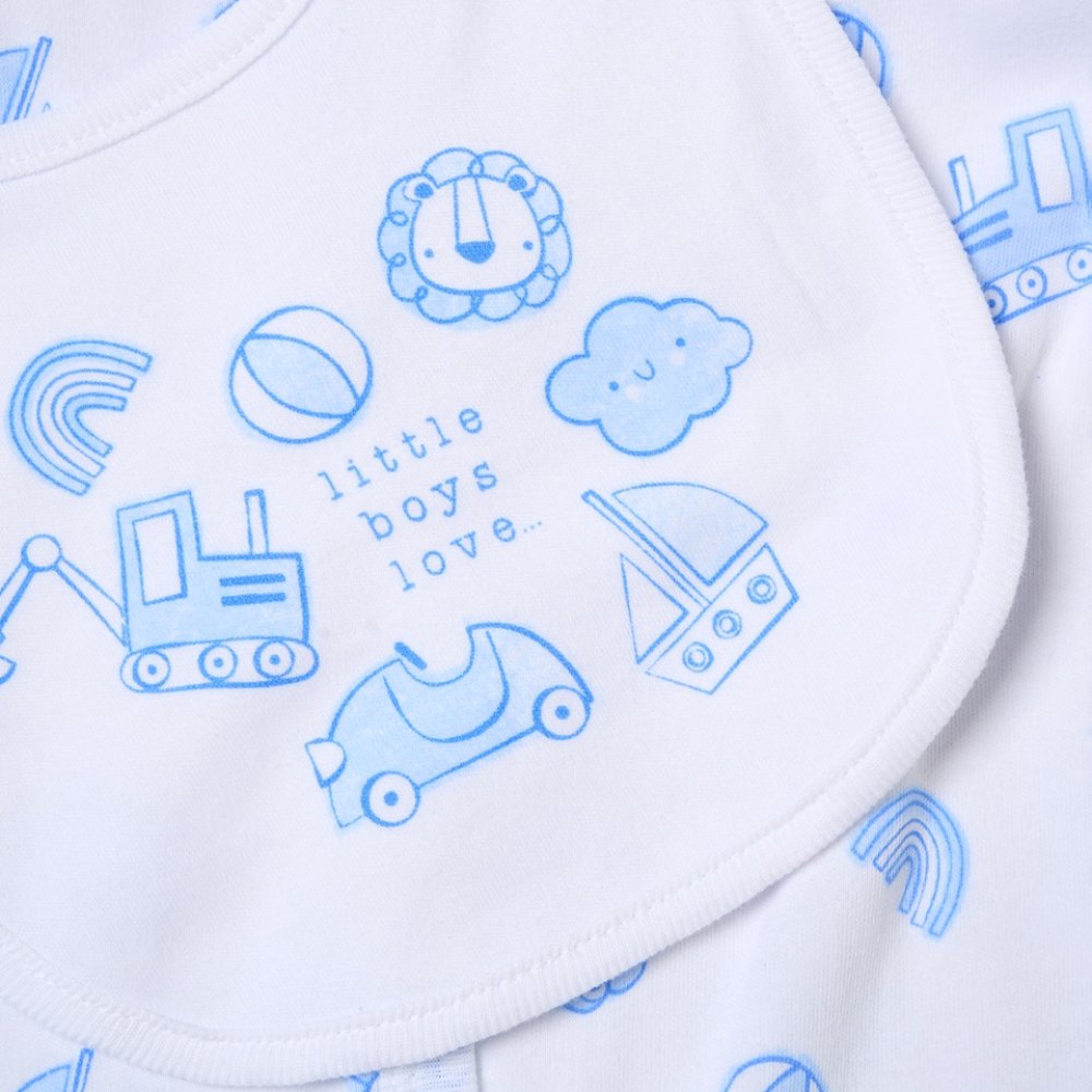 Description : 10 Piece gift set including Bib, Hat, Bodysuit, Trouser and 6 pairs of Socks