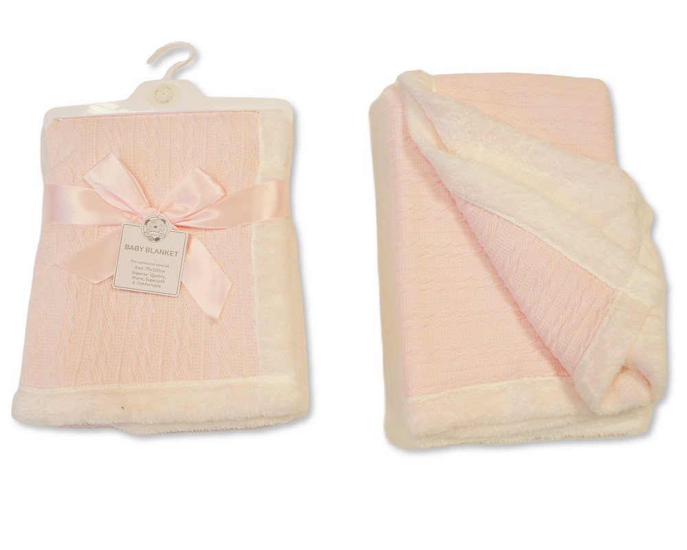 Baby Cable Knit Wrap with Fur Edge- Pink