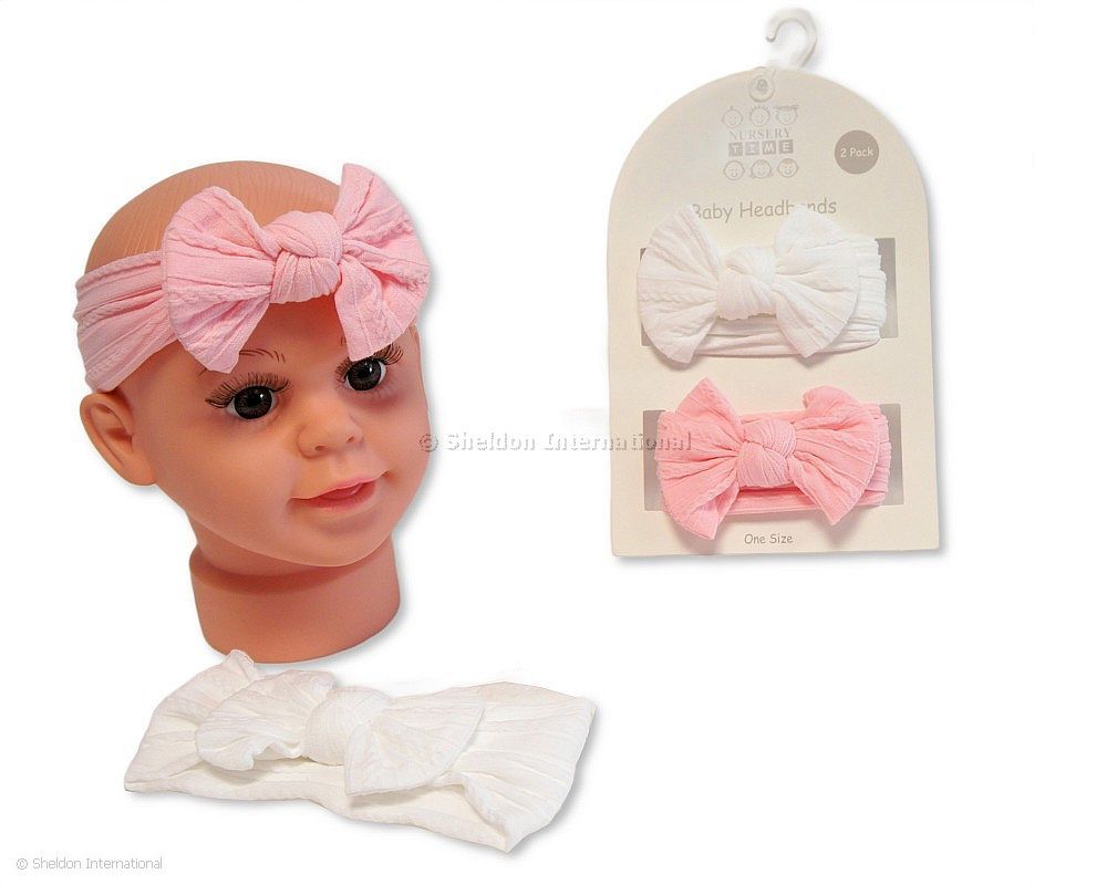 Baby Girls 2 Headbands with Bow Set – Pink