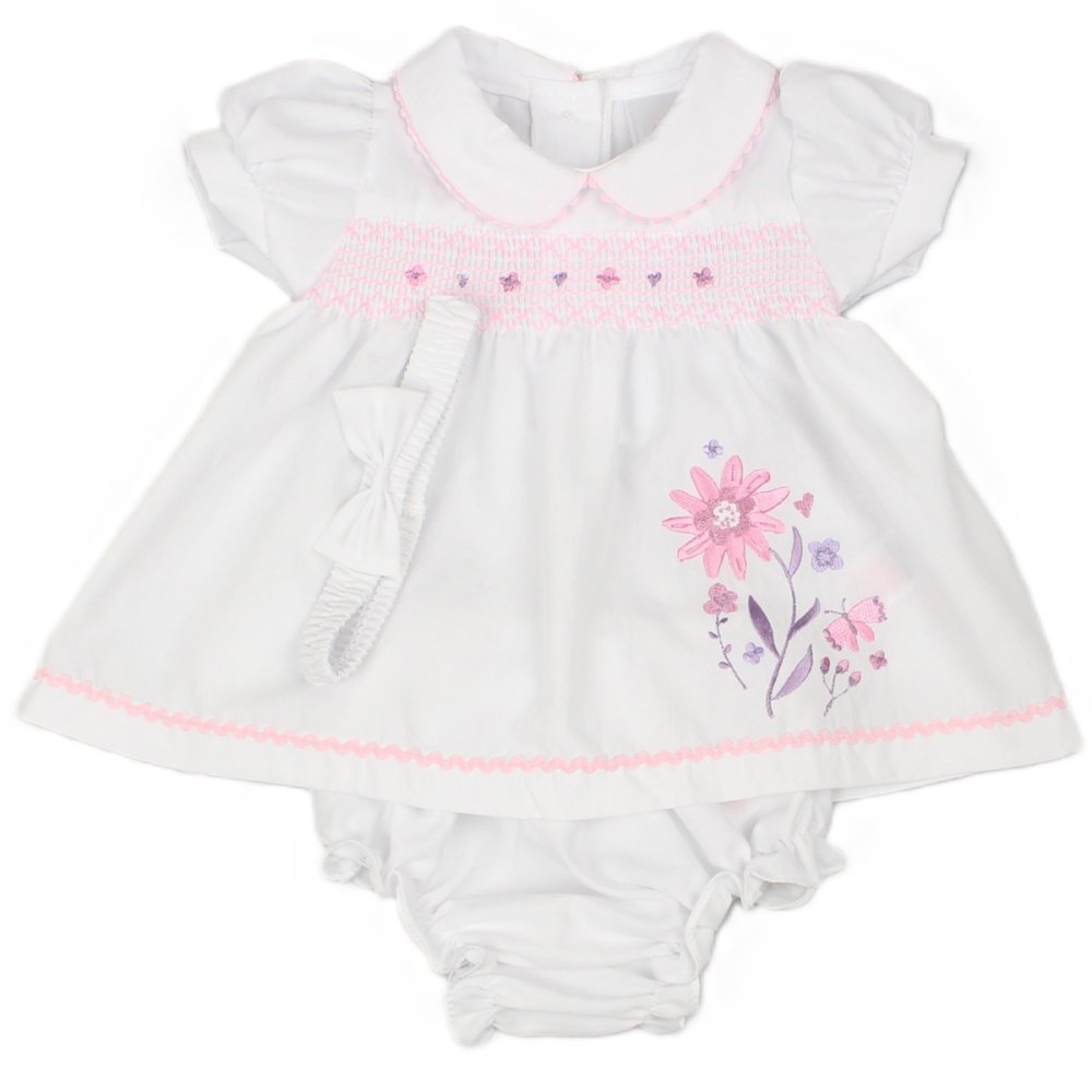 Willow & Whistle Girls Smocked Panel Dress & Headband Set