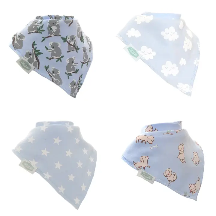 Our adorable cuddly blues bib set is perfect for little dribblers and teething tots! Includes a stylish bandana shape to catch drool and protect against the dreaded drool rash! Packaged in a stylish Ziggle box to make an attractive, unique and practical gift. Keeps outfits drier for longer Made from 2 layers – The top layer is 100% cotton for super softness whilst the bottom layer is made from super absorbent fleece, keeping little one drier for longer! No scratchy waterproof layer – Kind to baby’s delicate skin! Grows with baby – includes 2 adjustable nickel-free poppers to neatly fit from newborn age to toddler Secure fastening – difficult for little one to pull off
