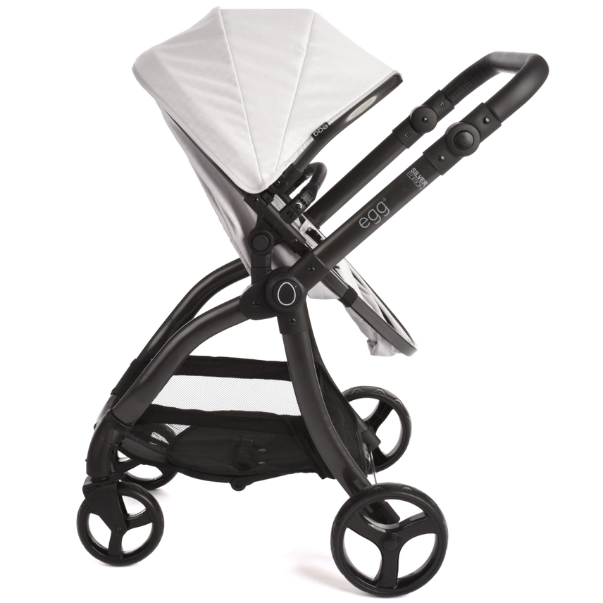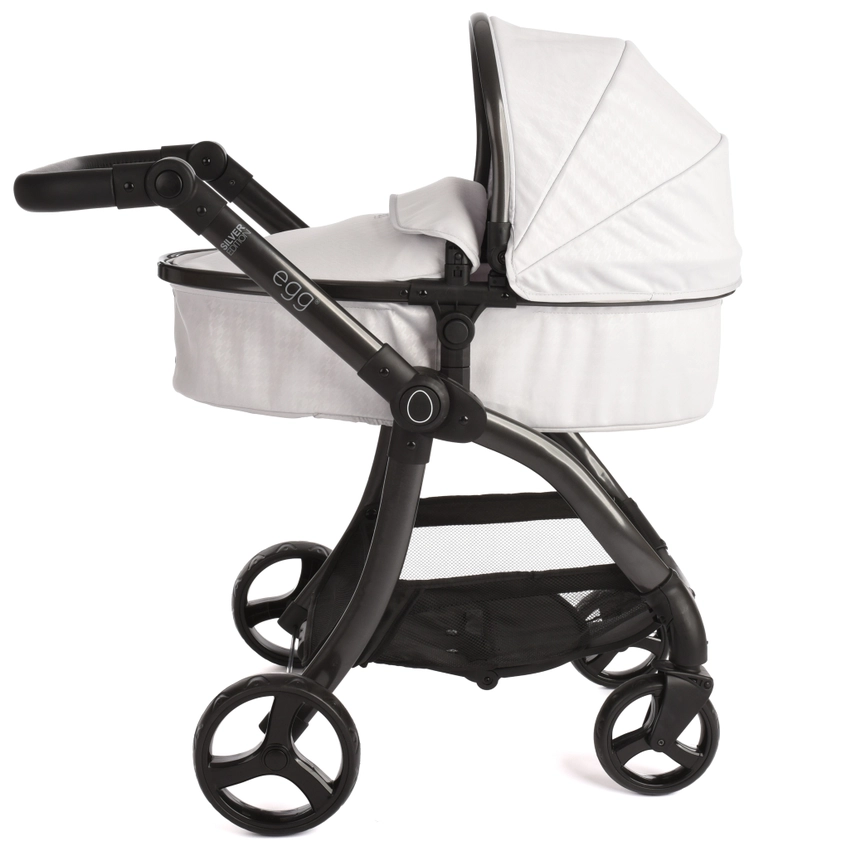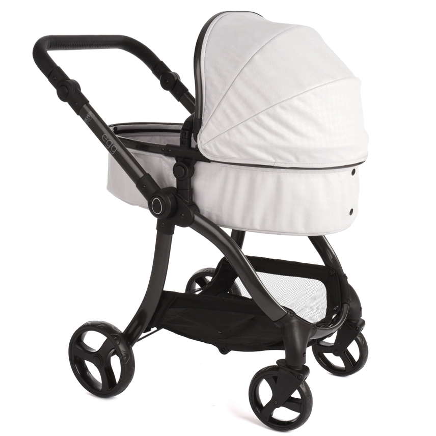 The egg® Dolls Pram by Roma Prams is a miniature version of the beautiful egg2®. It is suitable from age 3+, with a fully adjustable handle height ranging from 60cm-78cm. With 2 in 1 fabrics, the egg® Dolls Pram carry cot converts into a seat unit with simple poppers. The seat unit has a 3 point harness, suitable for dollies of all ages! Included in the box is a coordinating apron for use in carrycot mode. The fabrics are the same stunning Houndstooth Silver colourway found on the full size egg3® stroller. Finished on a titanium matte chassis with silver accents, perfectly complementing the light fabric adorned with the iconic houndstooth pattern. With a black leatherette hand-stitched handle bar. The egg® Dolls Pram also folds for storage. Simply remove the carrycot, then fold down the handle using the egg button on either side. Pull on the handle in the basket to collapse the frame. ***Please note the fur accessory bundle is not included with the egg dolls pram, it is an optional extra*** What’s in the box? Roma egg® Dolls Pram 2-in-1 seat unit/carry cot 3 point harness Apron Under basket Let’s take a look at the key features: Adjustable handle height 60 – 78cm* Suitable for 36 months + – please measure the handle height for your child. Lightweight frame Carry cot that converts to a seat unit with 1 strap 3 point adjustable harness 1 year warranty Dimensions: Mattress size 60cm – perfect for use with our range of our reborn dolls. Carrycot size L 60cm x W 27cm x D 16cm * We recommend that you measure the height of your child for age suitability.