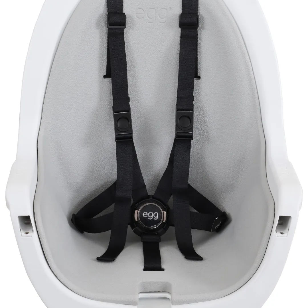 Suitable for babies from 6 to 36 months (up to 15kg), the egg® Highchair includes a soft, wipe-clean EVA seat pad, a 5-point magnetic harness, a 3-position meal tray with cup holder, and with a dishwasher-safe top tray.