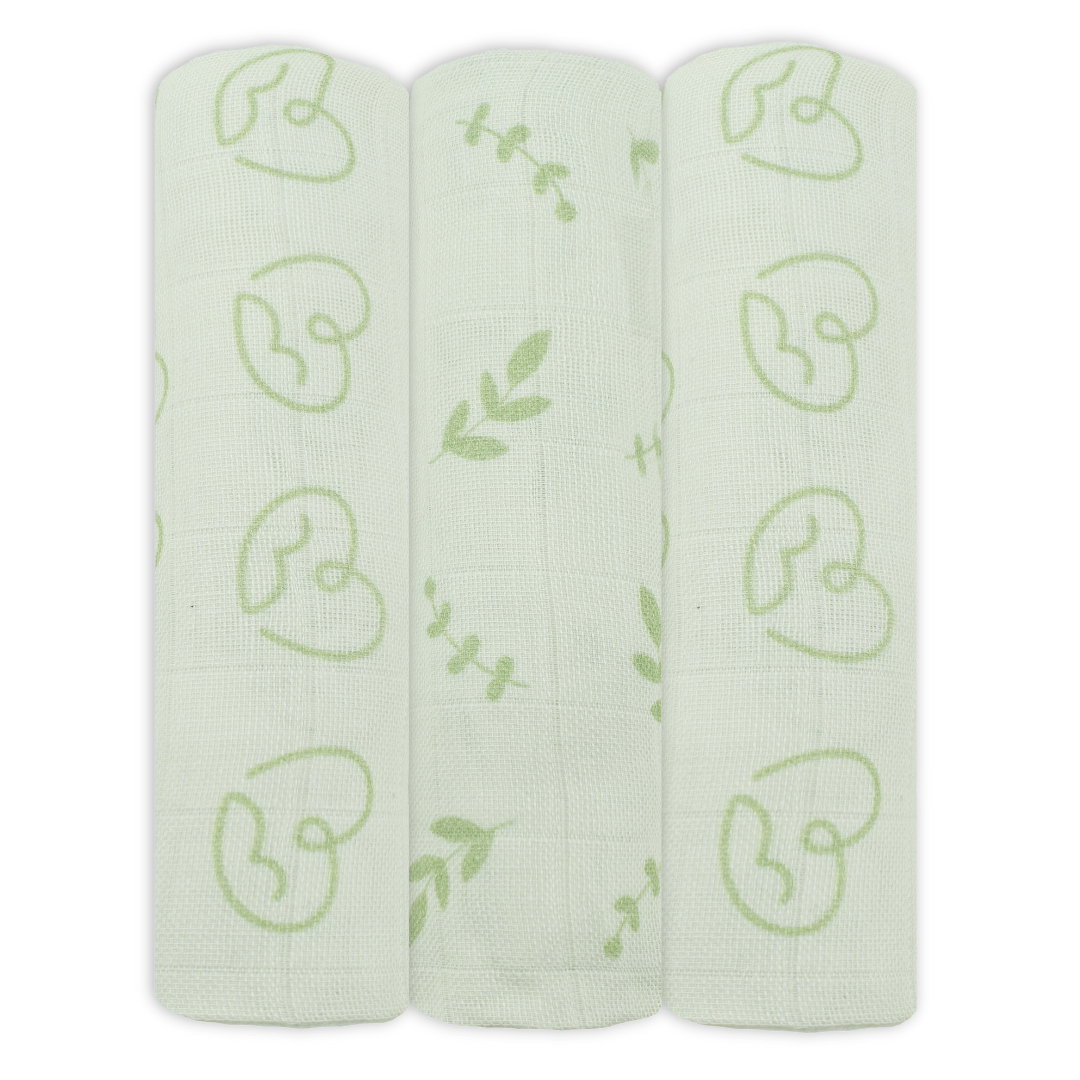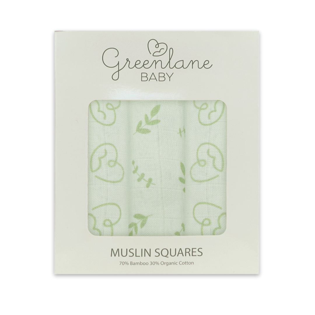 Greenlane 3 Pack Bamboo/Organic Cotton Muslin Squares 70x70cm – Heart Combo