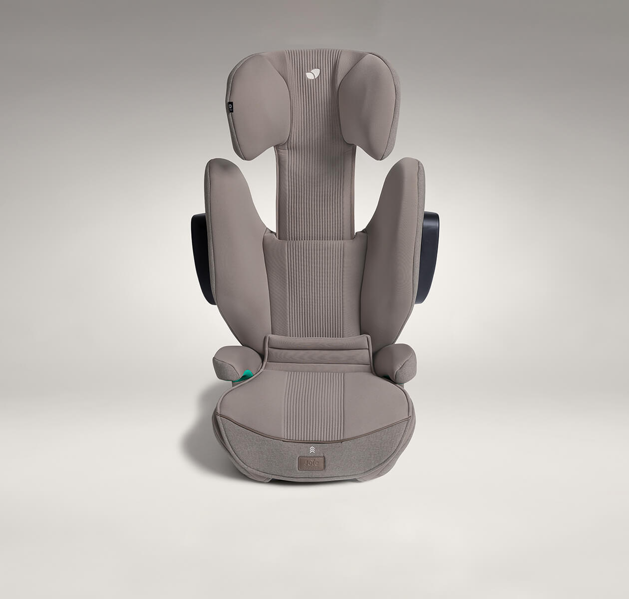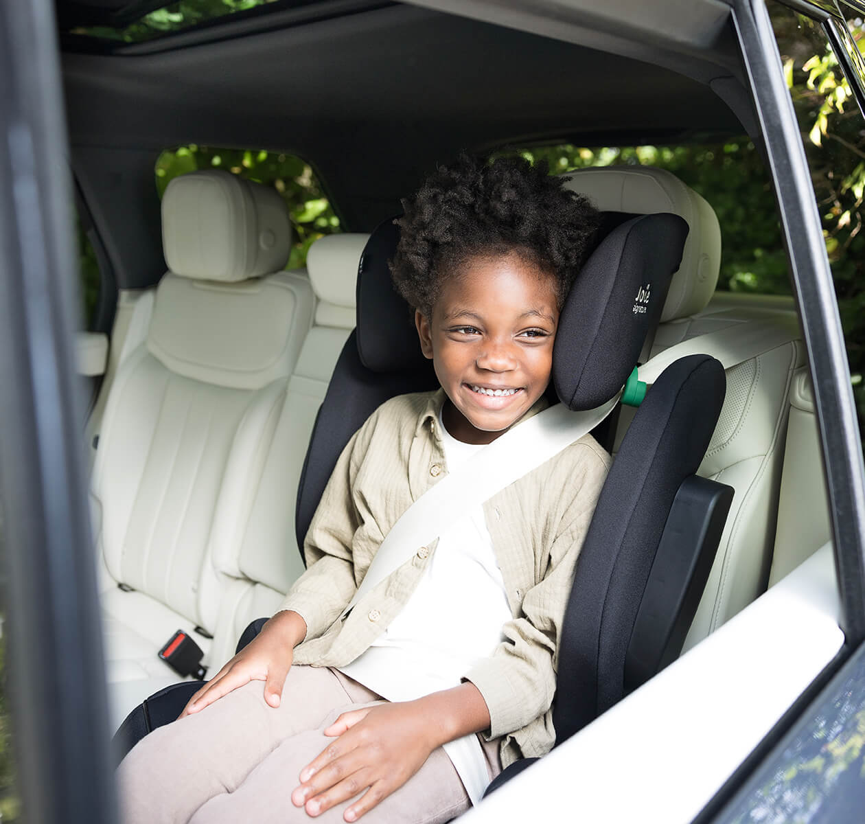 An i-Size belted booster seat with extra side impact protection to safely & securely transition them from little kid to big kid.