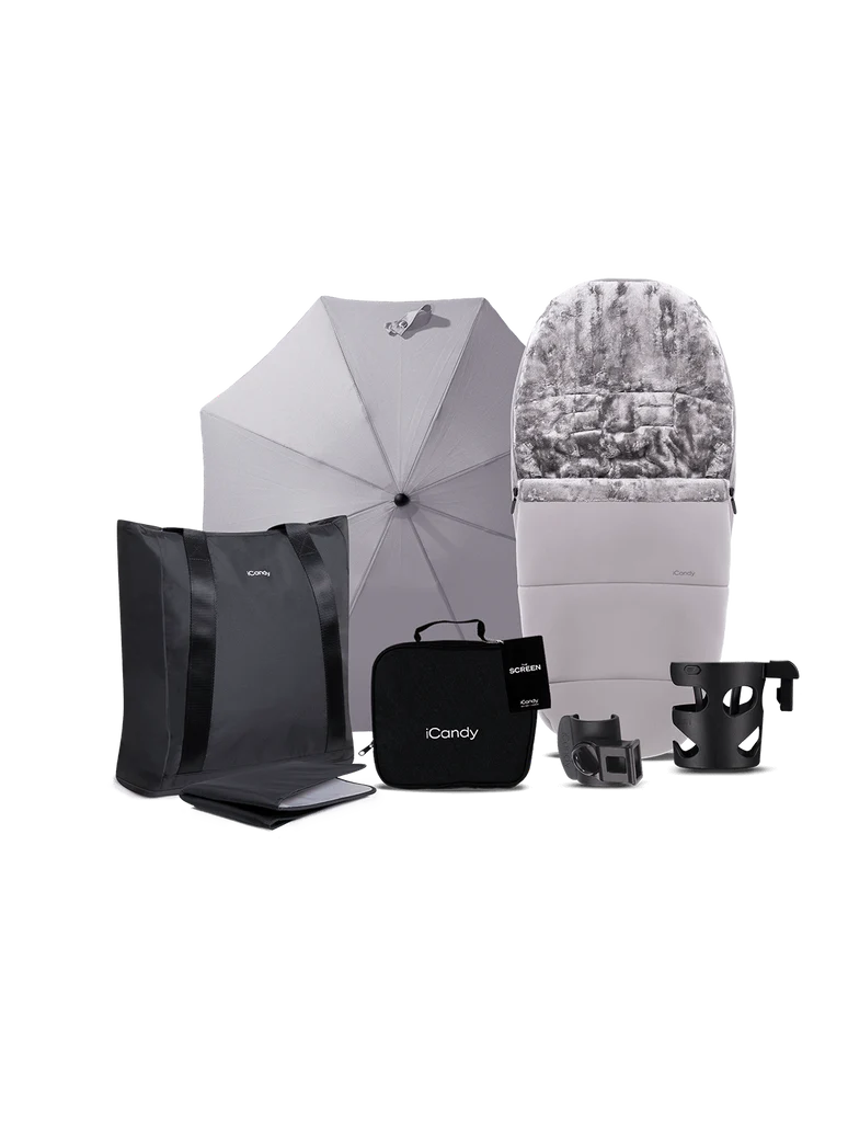 Finished in a contemporary Sandstone colourway with a sleek matte chassis, this comprehensive bundle includes a coordinated range of premium accessories — offering a stylish, long-lasting travel solution for growing families.