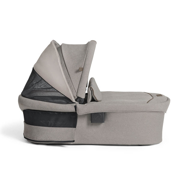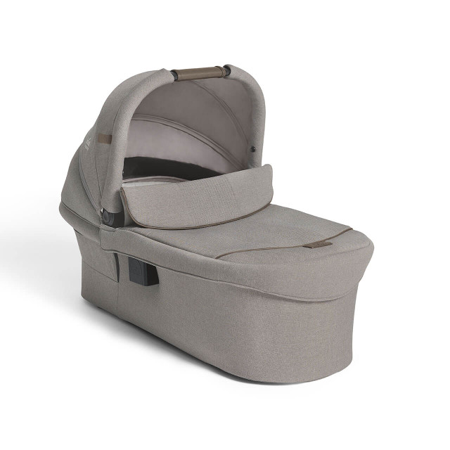 The carrycot has a large UPF50+ retractable canopy with multiple positions and a convenient leatherette carry handle. Together with the cool-weather apron provide excellent cover from the wind and rain. The Ramble XL carrycot set includes a rain cover for heavy showers. At the inner foot end, you can also find a storage pocket suitable to put in small items like nappies. The entire unit can be folded for easy and convenient storage.