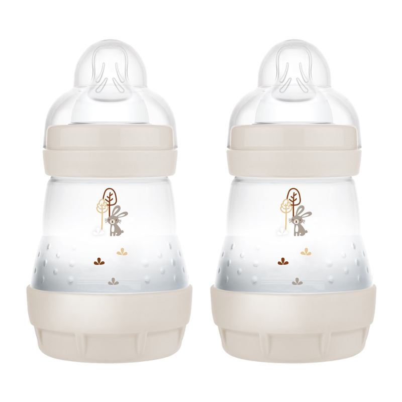 This set has thought of it all! Simple and safe to use and with the aim of making everyday baby life easier, MAM’s Easy Start Bottle’s Set includes the SkinSoftTM teat which is silky soft and provides a familiar feel for babies. Market research confirms that 94%* of babies accept the teat making it perfect for when mum wants to be a bit more flexible. One of the biggest features parents love about the Easy Start Anti Colic Bottles are their ability to self-sterilise. With no need for a separate bottle steriliser, MAM bottles can be self-sterilised in 3 easy steps, ensuring simple and safe bottle cleaning without hassle. MAM’s anti-colic bottles also provide a smooth drinking flow by preventing the formation of air bubbles, reducing colic symptoms in 80%** of babies who use them. (*Market research 2009-2022, tested with 1,643 babies.) (**Consumer study USA 2010, tested with 131 mothers, Medical study of 73 infants with colic symptoms, Austria 2011).
