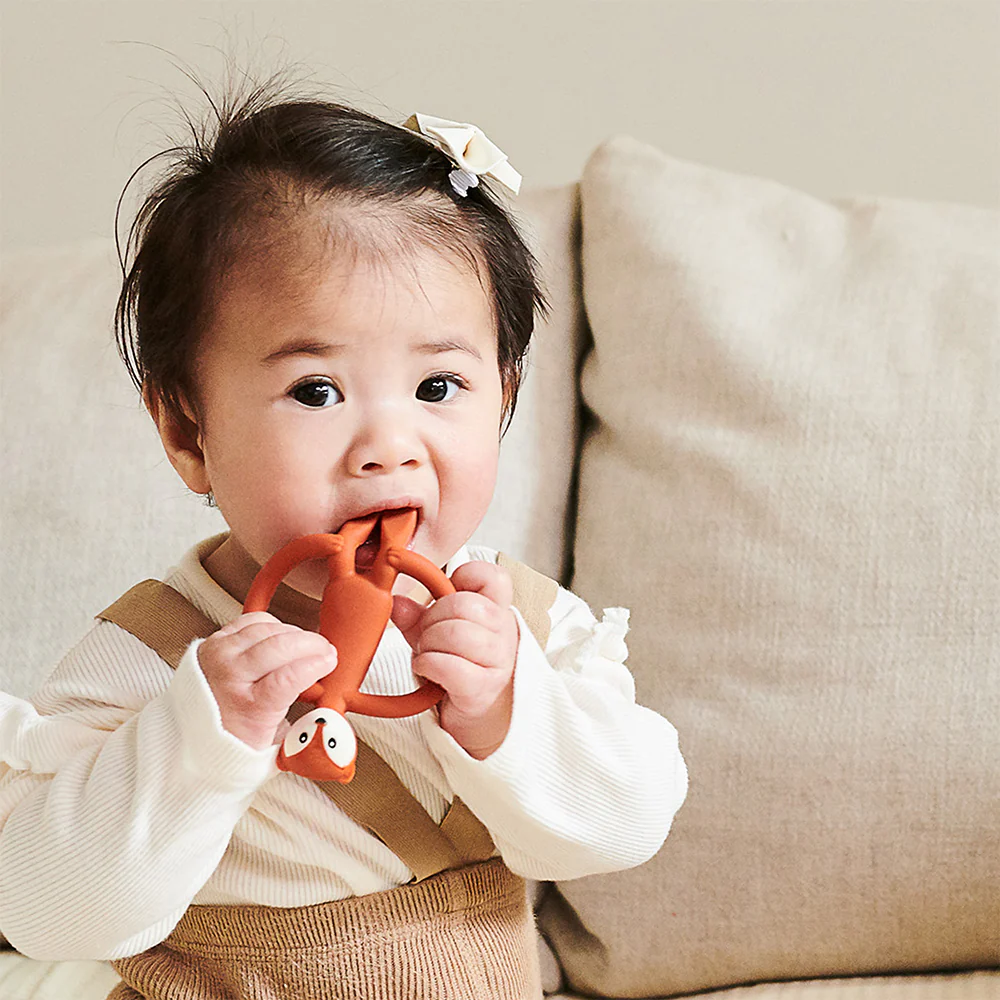 Fun & flexible – the perfect size for tiny hands. Little ones can chew to their heart’s content whilst getting right to the source of the pain. With textured bumps to help teething gels get to the right spots – no fingers needed. 6-18m.