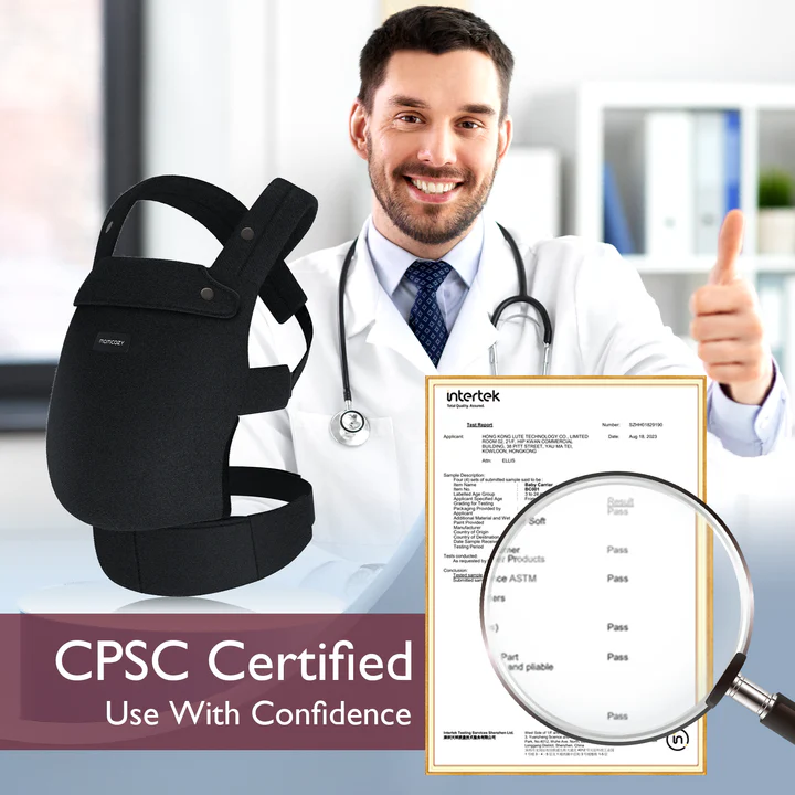 Recommended for babies 3 – 24 months, 7-45 lbs. Complies with the ASTM F2236 standard for infants weighing 3-20 kg. However, Momcozy advises caregivers to assess their baby’s specific size and developmental readiness to guarantee a secure and comfortable fit. Ensure the baby’s airways and mid-ear level remain above the carrier’s top panel at all times.