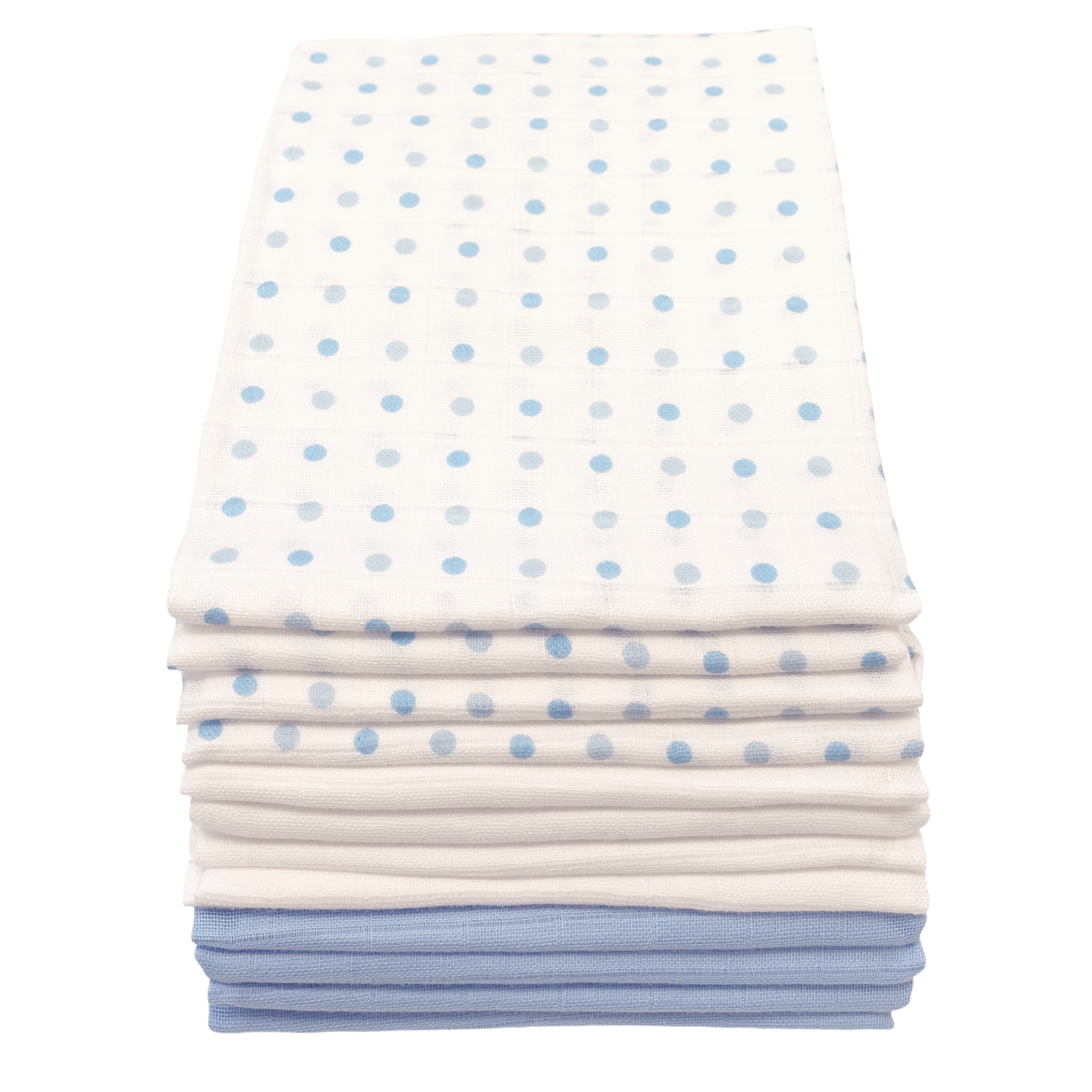 MuslinZ 12 Pack Muslin Squares 70x70cm –Blue Spot Mix