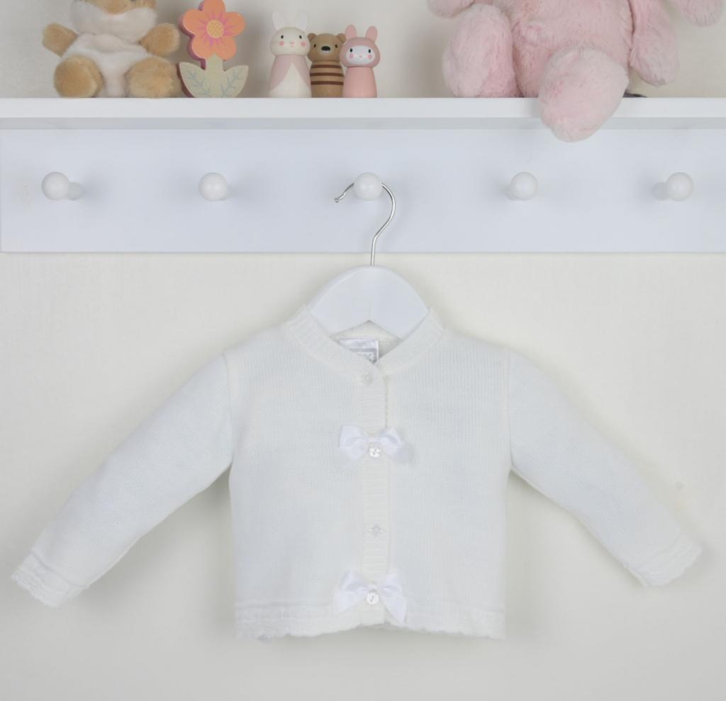 Knitted in wonderfully soft pure white cotton with pretty textures and gorgeous ribbon bows.