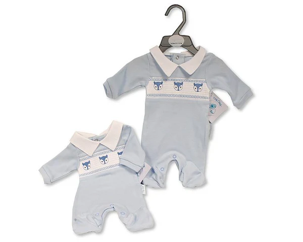 Premature Baby Boys All in One with Smocking – Fox