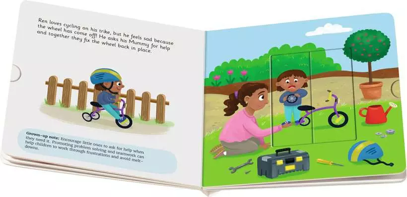 Everyday situations can sometimes bring big emotions. Learn about feelings together in Me and My Day….Feelings – as you read, find out about different emotions with the friends in the book. There are playful sliders on each page to add interactive fun. My and My Day….Feelings includes some handy parental tips too.