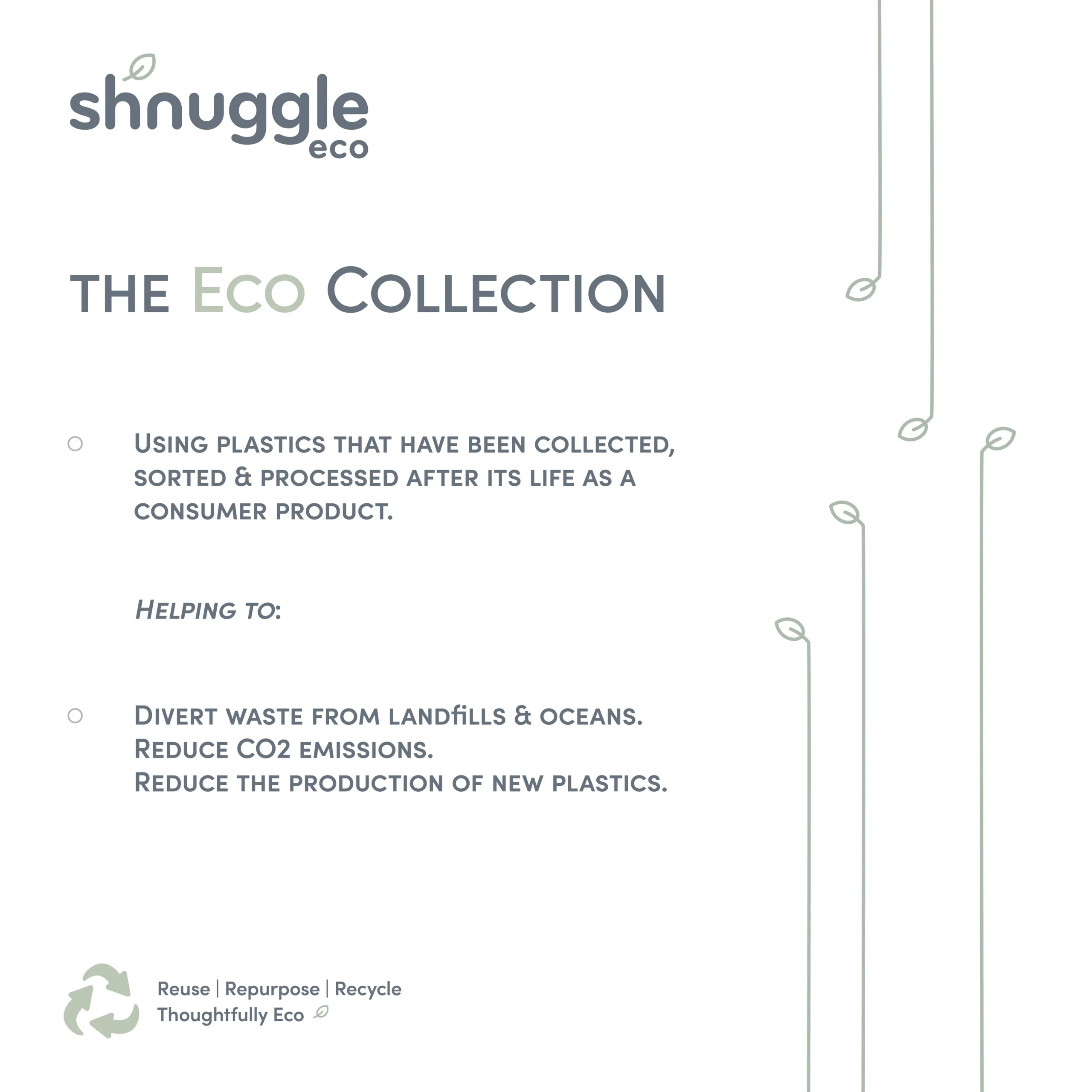 *Made from 98% recycled post-consumer plastic. Plastics from bottles, bags or containers that have already been used and recycled are given a new lease of life rather than ending up in landfill. All of our products including those in our Eco Collection have been fully tested to all relevant safety standards to ensure they are baby safe.