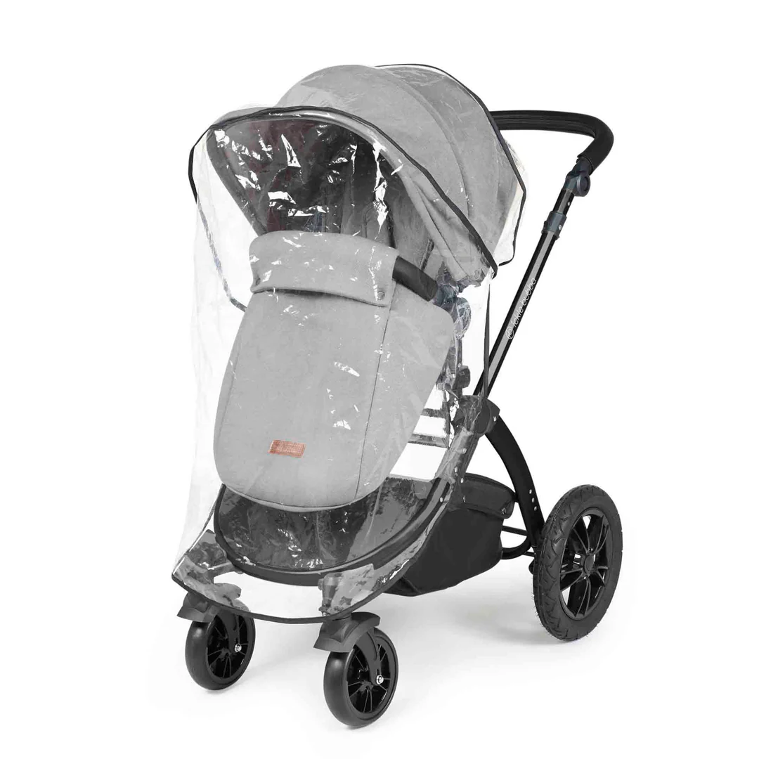 The Stratus travel system plus bundle includes the Stomp Luxe pushchair with seat and carrycot, Stratus i-Size car seat and ISOFIX base, car seat adapters, car sunshades, changing rucksack and mat, carrycot apron, footwarmer, seat liner and rain cover.