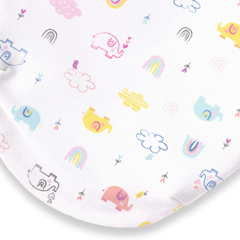 Elephants and Rainbows print. Suitable for 0 – 3 Months (7 – 14 lbs / 3.2 – 6.4 kg), up to 65cm.