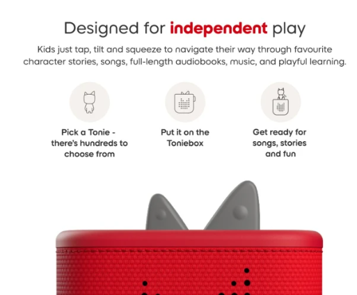 Toniebox 2 is the kid-powered audio player with even more ways to play, designed for ages 1-9+. Kids can dive into favorite stories and songs with an ever-growing crew of Tonie characters, just by popping one on the Toniebox.