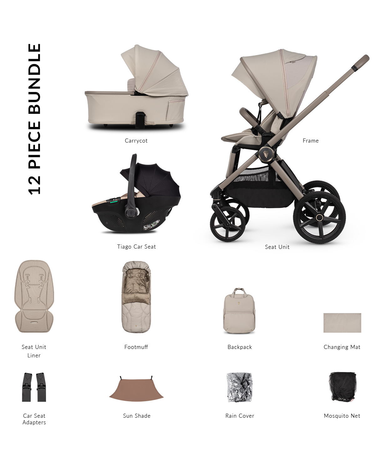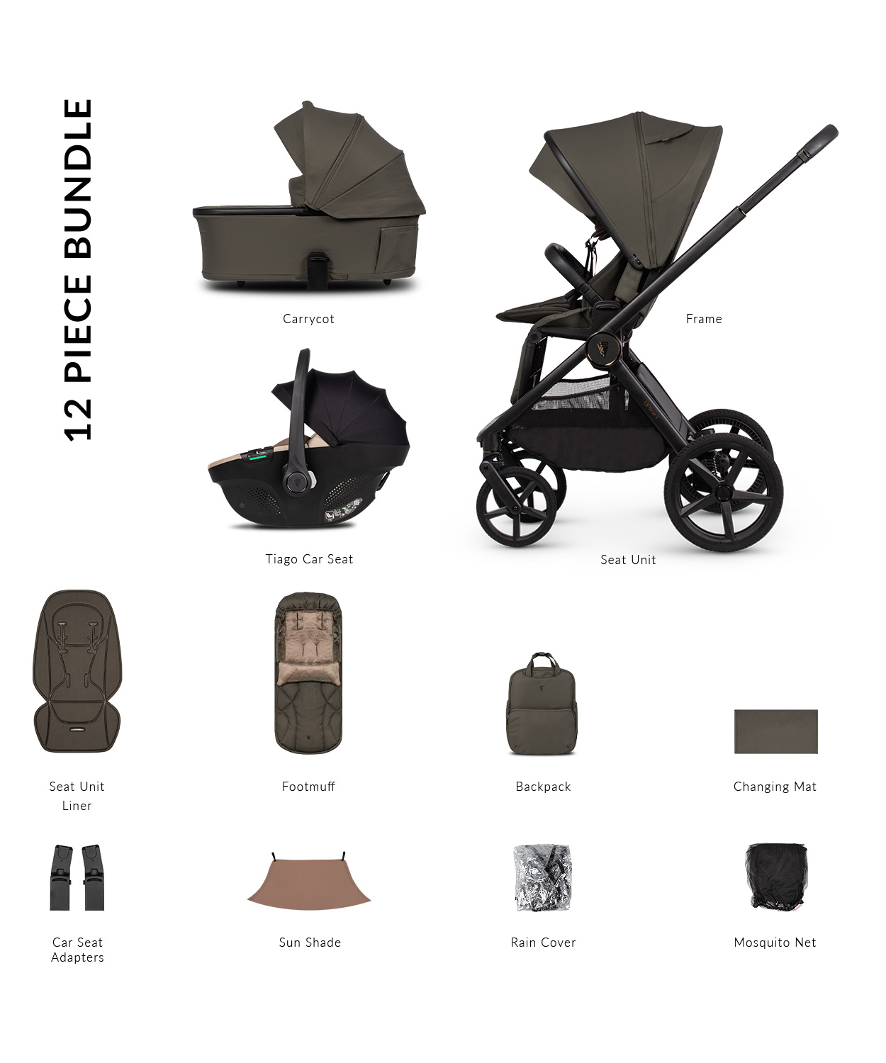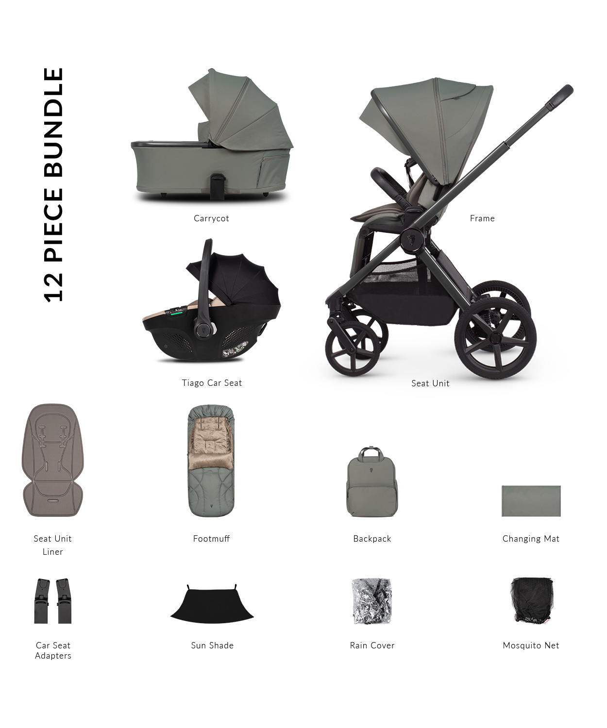 - Built in height adapters for the carrycot, seat unit and carrycot.