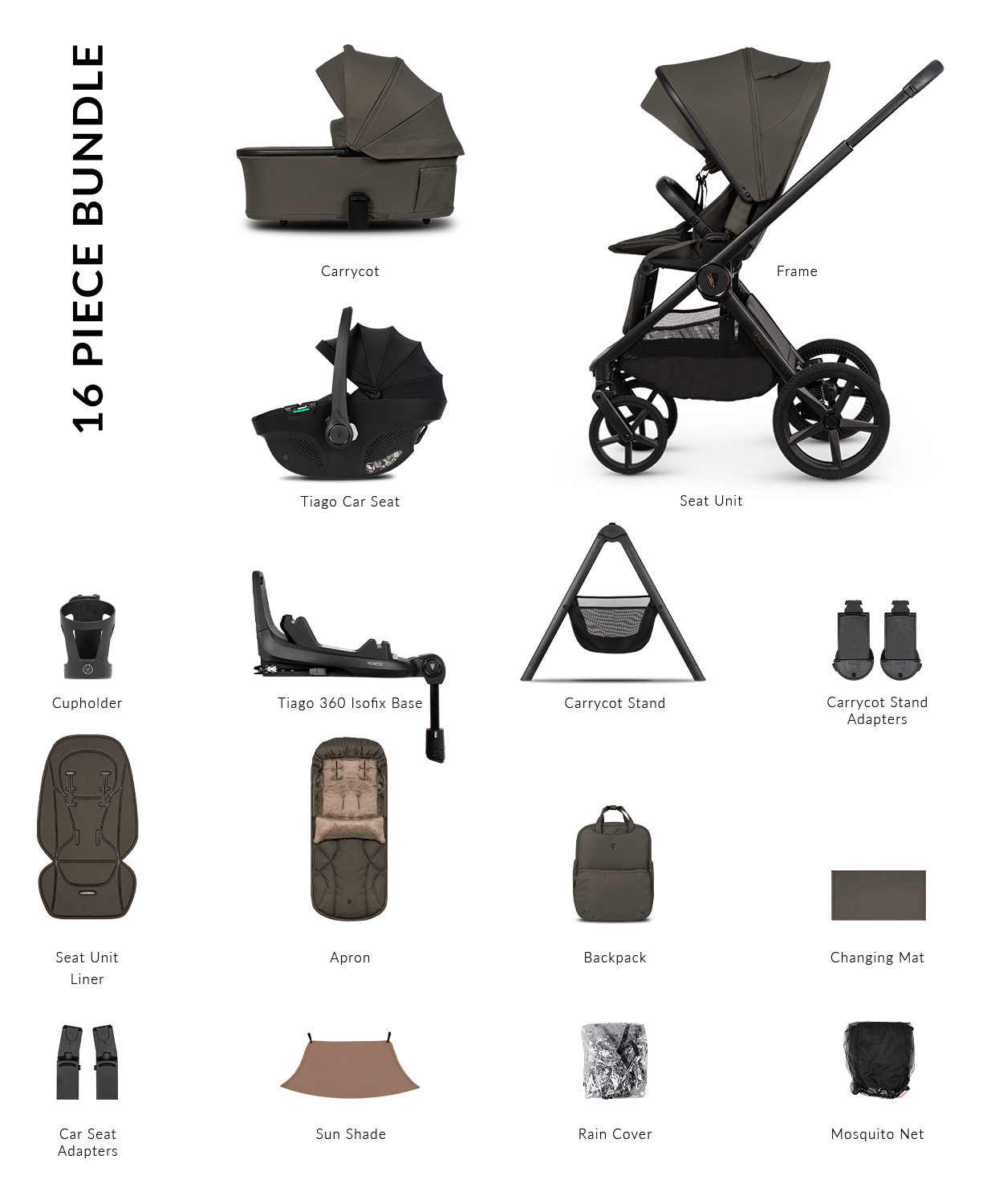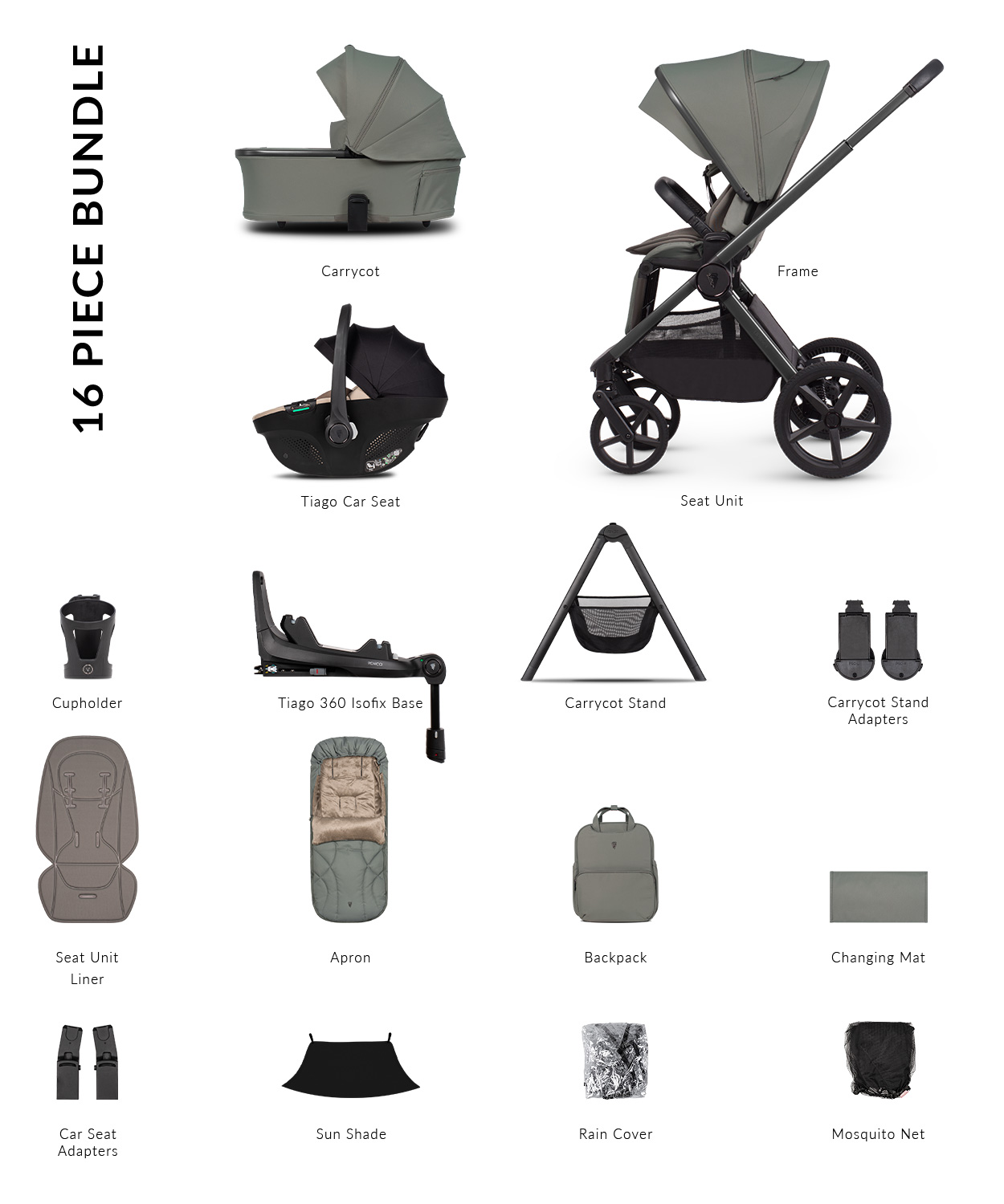 - Built in height adapters for the carrycot, seat unit and carrycot.