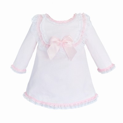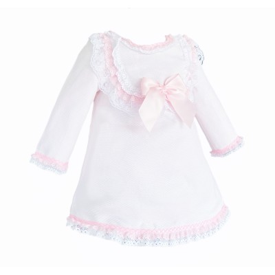 Wee Me Pink Waffle Dress with Satin Bow & Lace Detail- Pink